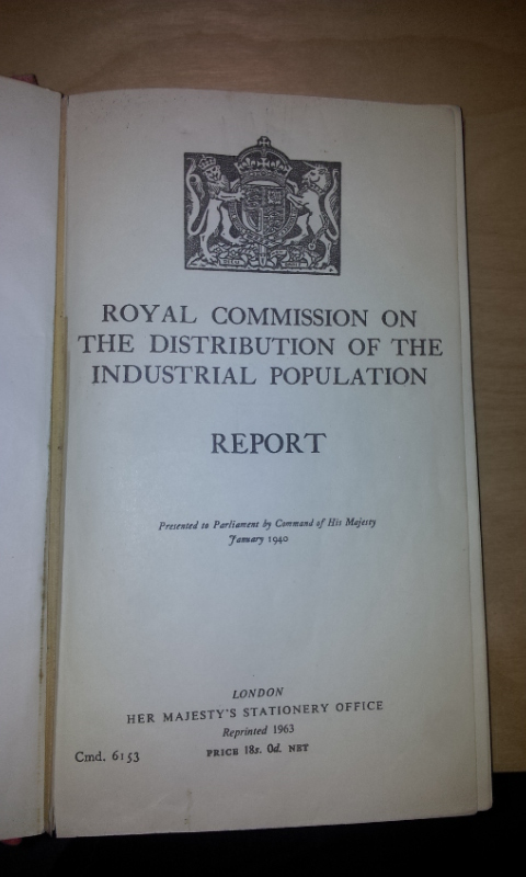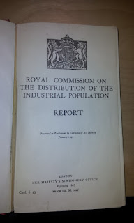 I've been thinking about the matter of London and the kind of 'two-speed Britain' stories which have been in the press recently. The idea is that London's continued growth and prosperity - in contrast to the rest of the UK - is a problem. The BBC covered this via Stephanie Flanders in March and the Guardian did a piece on it in May this year. The Economist even did a special supplement on London last year, entitled 'On a High' in which they covered a range of issues, not just economic growth - e.g. a map and some of my work on deprivation on p. 7 of the pdf. These kinds of stories always generate a lot of debate (see the comments on the Guardian piece for an example) of the 'London vs. the rest' variety but I suppose the thing that sticks in my mind is that none of this is really new. The precise nature of London's recent resurgence is perhaps unique but it's hardly a new problem. I was reminded of this last week at the Centre for Urban Policy Studies 30th Anniversary conference in Manchester when Sir Brian Briscoe quoted from the Barlow Report of 1940 (photo below - yes, I actually have a real copy to hand!).