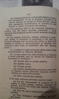 Peter Hall's reading of Barlow is fascinating for many reasons but I found it interesting that he chose to pick out the exact same quote that Sir Brian Briscoe did last week: "the continued drift of population to London and the Home Counties constitutes a social, economic and strategical problem which demands immediate attention" (p. 202 - see below for copy of the original, in paragraph 5).