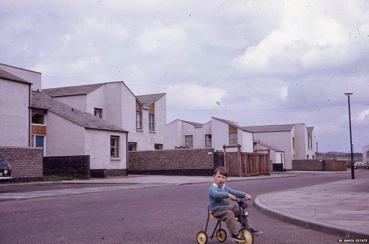 In the summer of 2013, after securing funding from the University of Sheffield Alumni Fund, I was able to hire Joe Carr and Philip Brown (recent graduates) to digitise the entire collection and upload it to our dedicated JR James Archive Flickr site. After more than 2 million views and a year online, the BBC magazine did a piece on the archive, called 'The era of radical concrete' which created huge interest and led to a follow up from residents of the places featured in the images. But one image in particular puzzled us... It was simply labelled 'Housing Scotland' (see below for the original slide and the online scanned image) and we just couldn't fine an exact location for it, but we thought it was in the New Town of Cumbernauld, 15 miles or so from Glasgow.