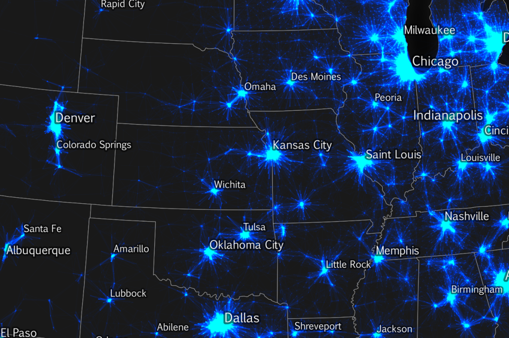 | A little glowing flow map example from my US commuting map |