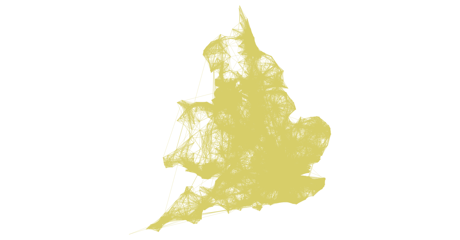 Since a few people have asked about it, I thought I'd share it - and thanks to Nyall Dawson and all the other QGIS developers for making this possible. If I begin with a commuting flow dataset I made for England and Wales and just add it to QGIS, here's what I get (click on the individual images to see them full size):
