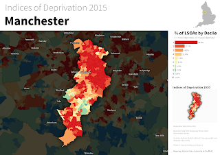 * Just in case the use of this word sounds odd to you, we use the word 'deprivation' in the British context in studies of urban poverty/disadvantage but it's not exactly the same thing. I've written about this in previous academic papers but to all intents and purposes more deprived means 'poorer' and less deprived means 'richer'. In the maps above, you could say red: poor and blue: rich and you wouldn't be wrong (ecological fallacies notwithstanding).