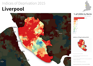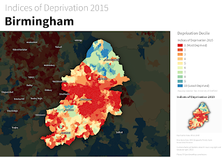 * Just in case the use of this word sounds odd to you, we use the word 'deprivation' in the British context in studies of urban poverty/disadvantage but it's not exactly the same thing. I've written about this in previous academic papers but to all intents and purposes more deprived means 'poorer' and less deprived means 'richer'. In the maps above, you could say red: poor and blue: rich and you wouldn't be wrong (ecological fallacies notwithstanding).